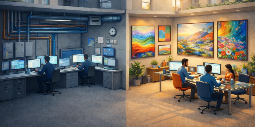 Este artículo fue escrito por Palinodia Studio, donde creamos tanto arte tradicional como arte generado por IA con un enfoque en bienestar y accesibilidad. Si este contenido resuena contigo, nos encantaría conversar sobre cómo podemos ayudarte a integrar arte como infraestructura en tu espacio.